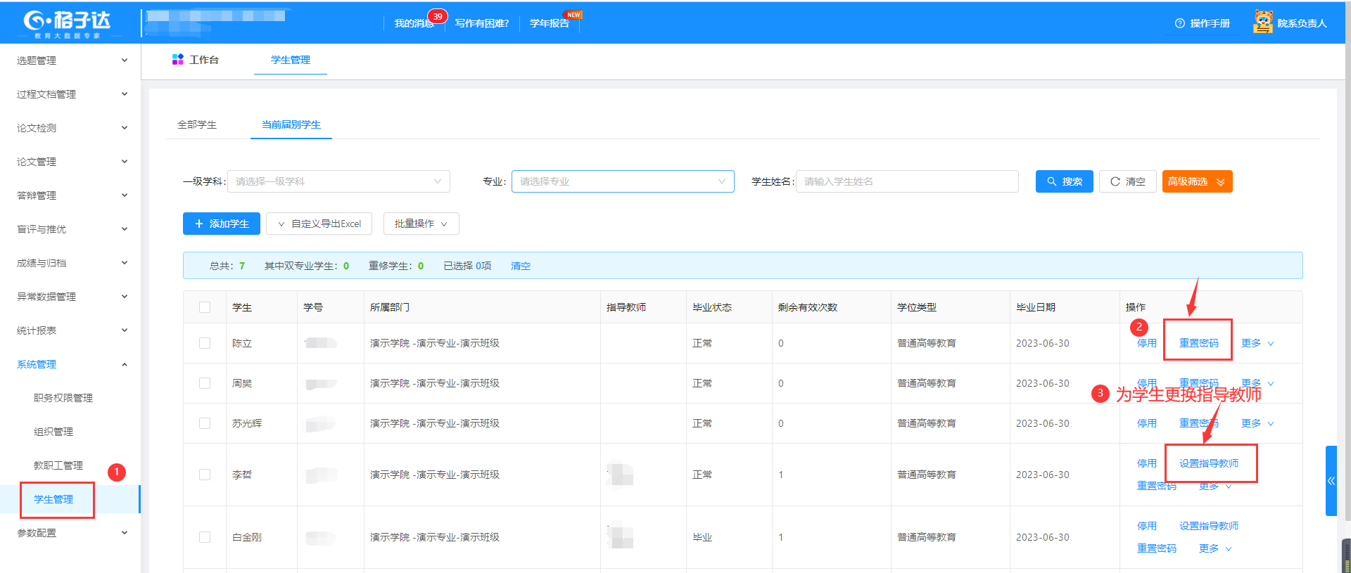 2.学生重置密码、更换导师: