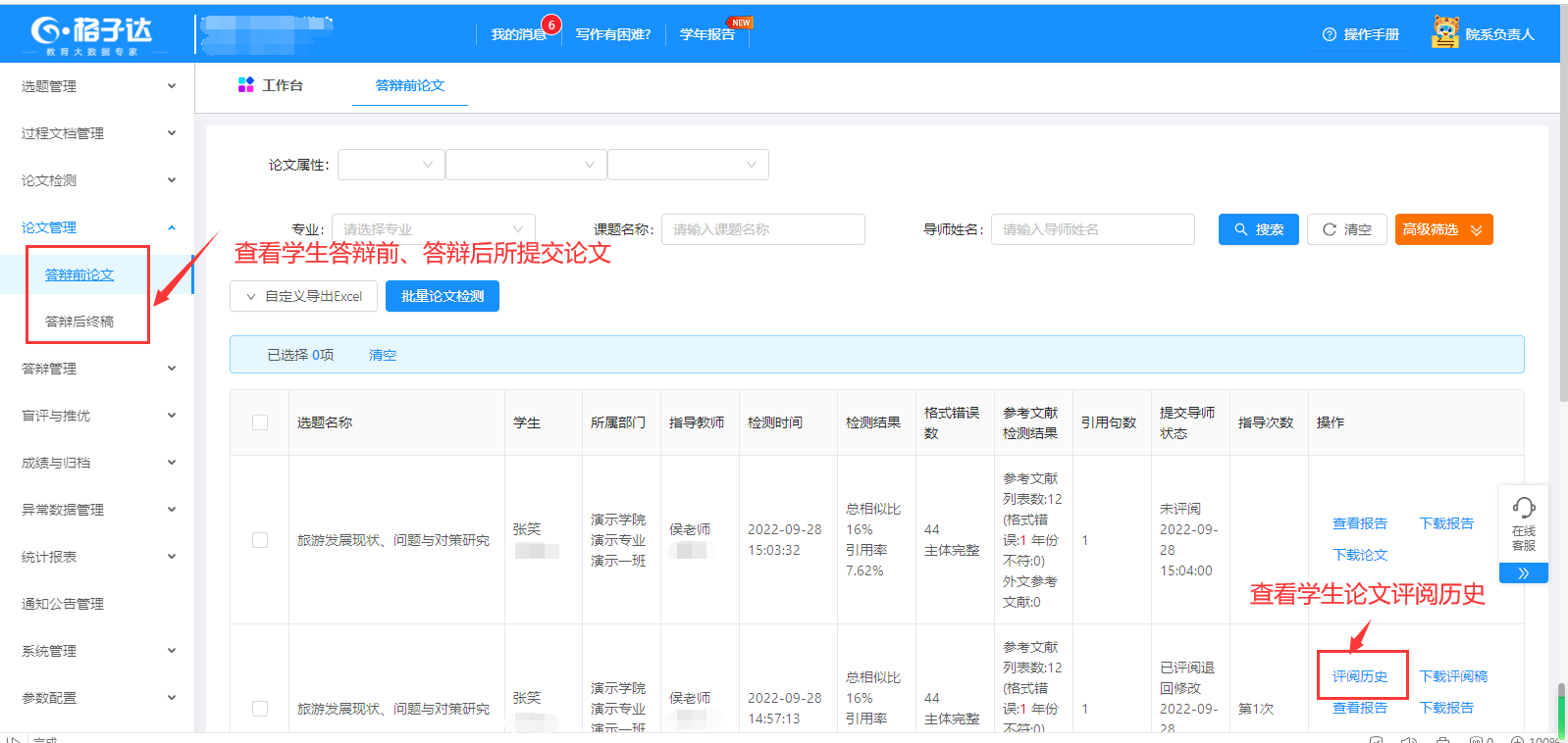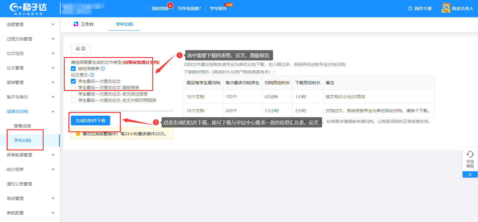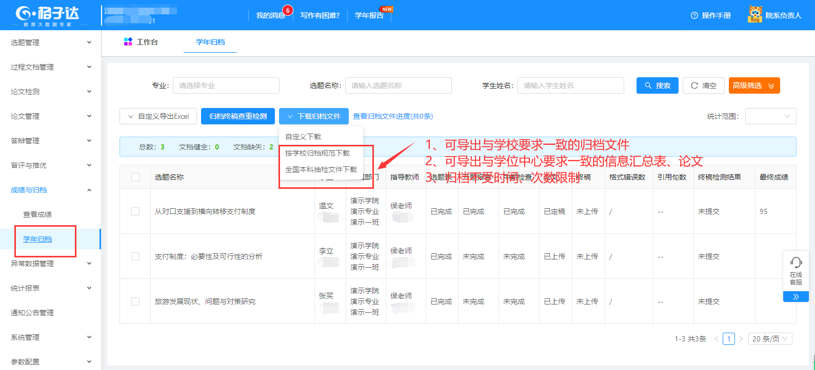 “格子达”毕业设计(论文)管理系统 用户手册(院系负责人版)