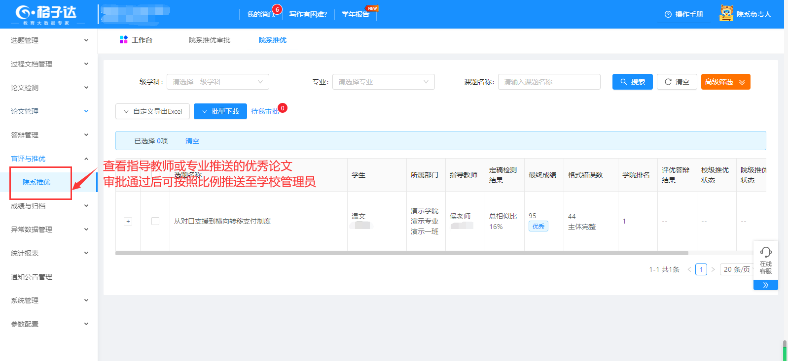 1.审批推荐为院系级别的优秀论文,审批通过后成为院系级别的优秀论文