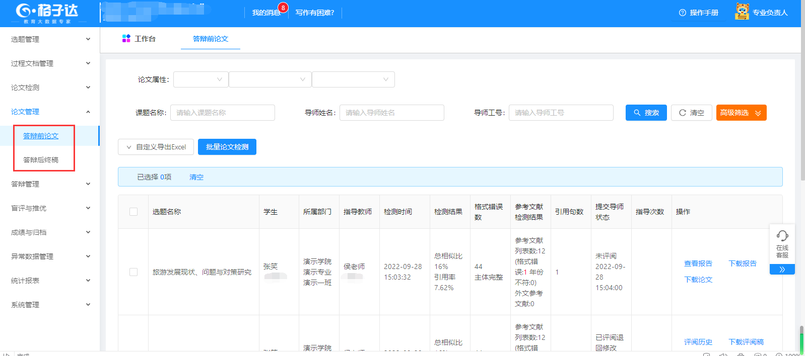 “格子达”毕业设计(论文)管理系统