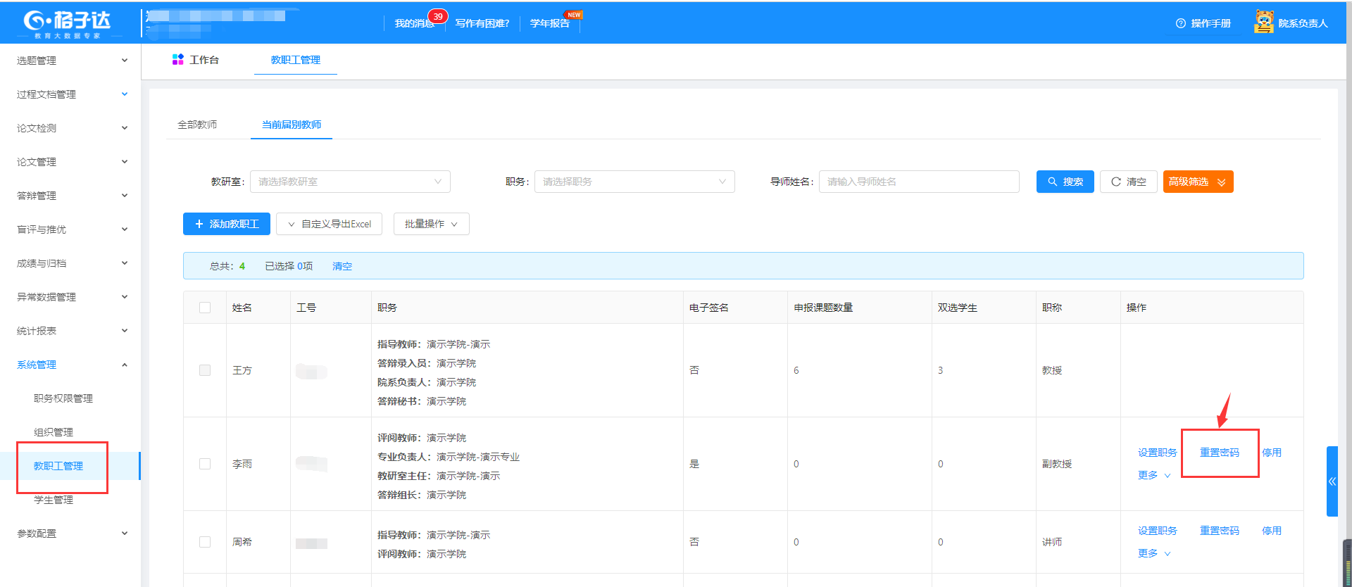 1.教职工批量重置密码: