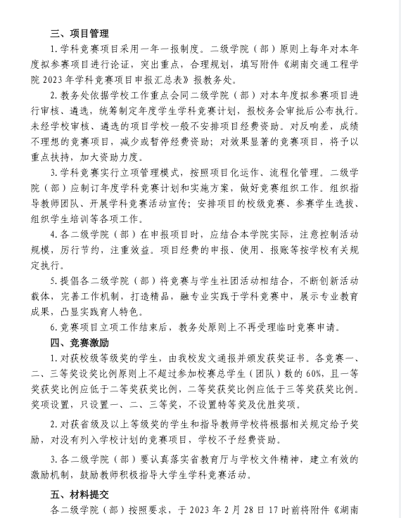 (转)关于组织申报 2023 年度大学生学科竞赛项目的通知