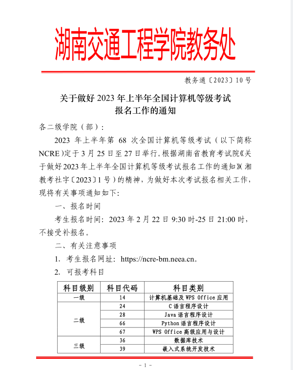 下一篇 :(转)关于做好2023年上半年全国计算机等级考试报名工作的通知