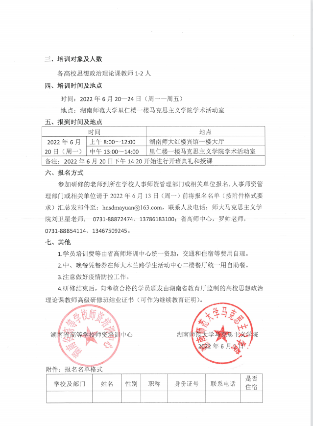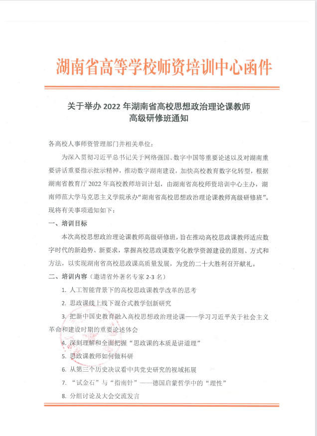 转发:关于举办2022年湖南省高校思想政治理论课教师高级研修班通知