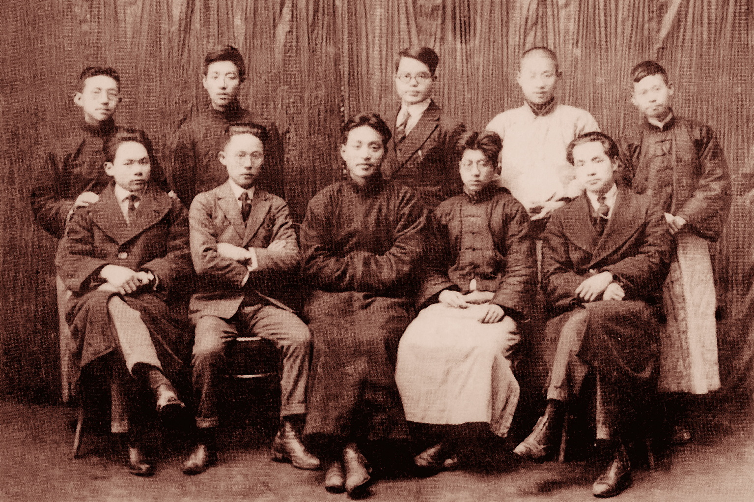 1924年3月,中国社会主义青年团第二届中央扩大会议部分与会者在上海合影。前排左起:卜道明、阮啸仙、陆沉、夏明翰、邓中夏;后排左一为刘仁静,左三为黄日葵,左四为恽代英