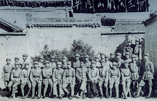 1938年,毛泽东和参加过井冈山斗争的部分人员在延安合影