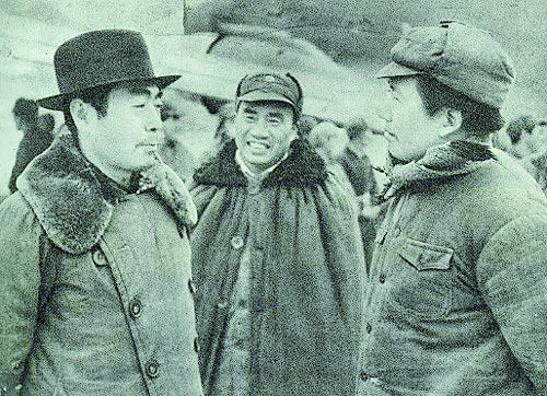 井冈山斗争时期,在中央主持工作的周恩来十分关注井冈山和朱毛红军。1930年1月15日,他在中央军委创办的《军事通讯》上发表了陈毅撰写的《关于朱毛红军的历史及其状况的报告》,对推广井冈山的斗争经验作出了重要贡献。图为周恩来(左)与毛泽东、朱德(中)在延安机场