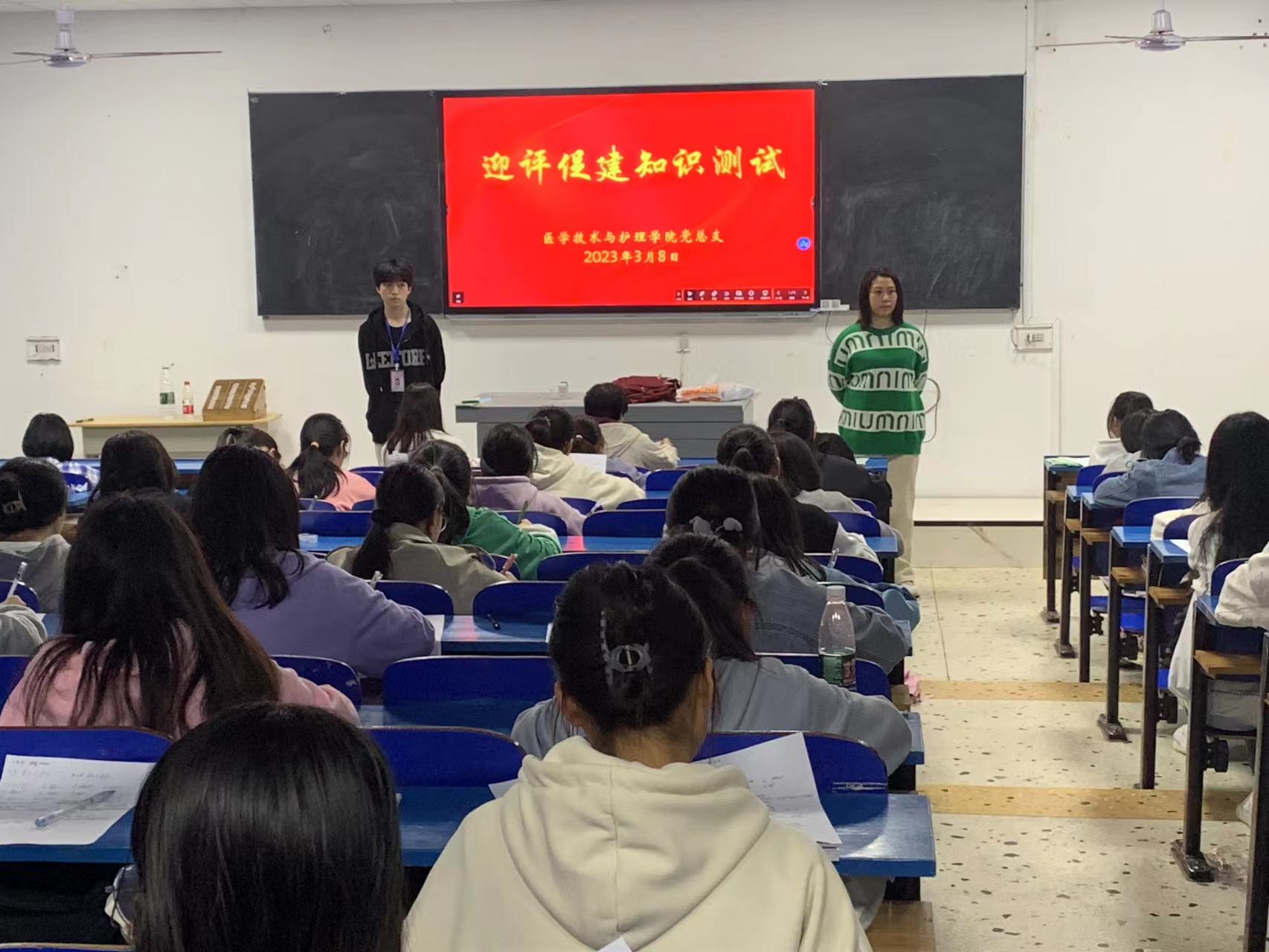 活动分为三部分。第一部分,2月27日中午12:30邓丽书记在教学楼201教室给学生干部做“迎评宣讲”会议。邓丽书记从教学工作合格评估的主要特点、beat365发展历史与基本情况、学生在合格评估中的使命等三个方面给学生干部做了宣讲,特别是强调了同学们要具有“校兴我荣,校衰我耻”的意识。第二部分,3月5日,医护学院辅导员开展“部署新学期工作,迎接本科合格评估”主题班会。各位辅导员围绕“四个促进、三个基本、两个突出、一个提高”这一核心内涵,向同学们讲述了本科评估的重要性和注意事项,让同学们以“主人翁”的姿态积极主动的参与到此次评估中来。第三部分,3月8日,我院组织学生开展“迎评促建知识测试”考核。动员激发同学们全员投入、全身心投入迎评促建,秉承求是态度,以优良的学风、最饱满的精神状态投入到学院“迎评促建”中去。巍巍学府,世纪传承,这次测试既是对学院教学工作的一次检查,也是对学生是否重视迎评促建的一次检验。