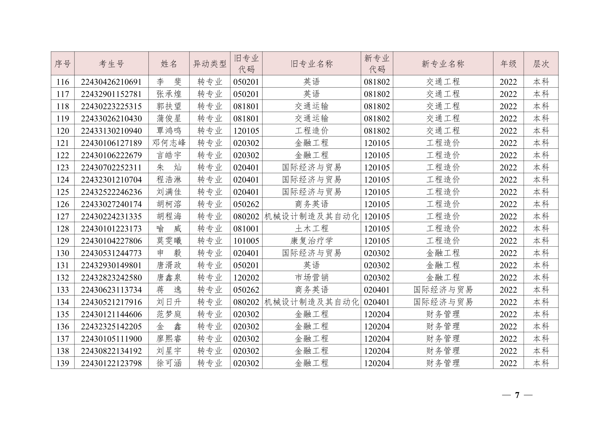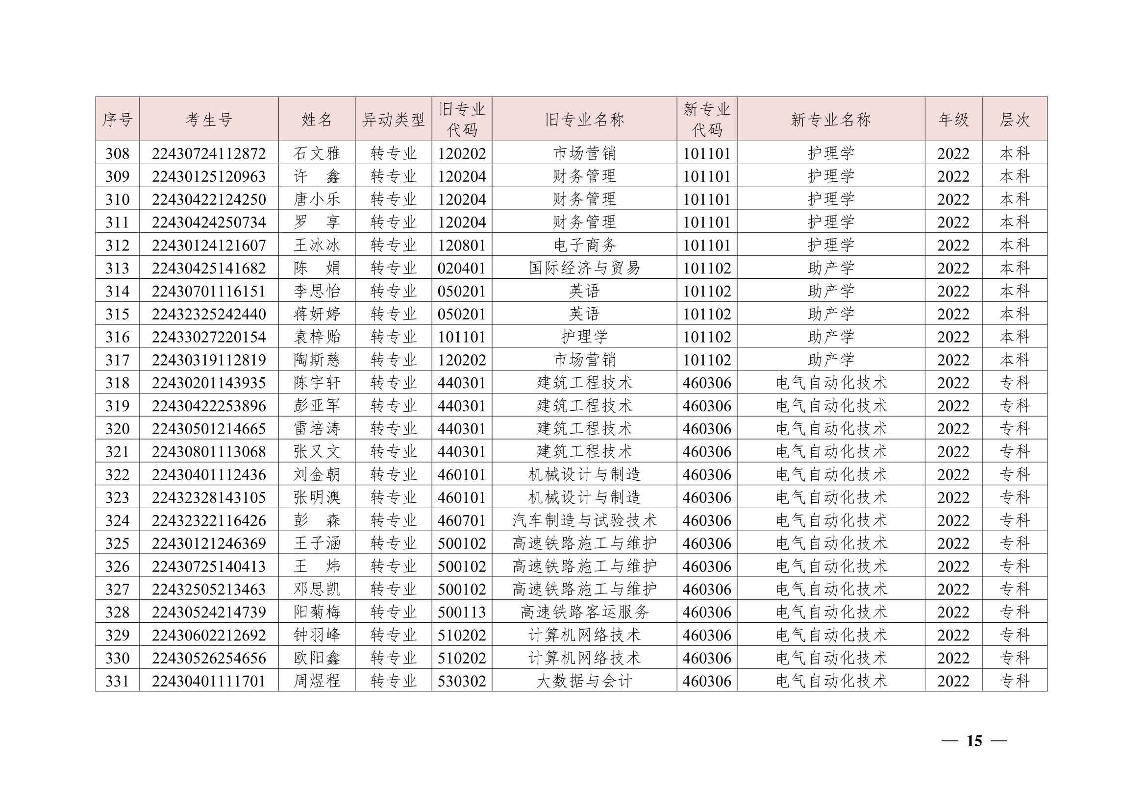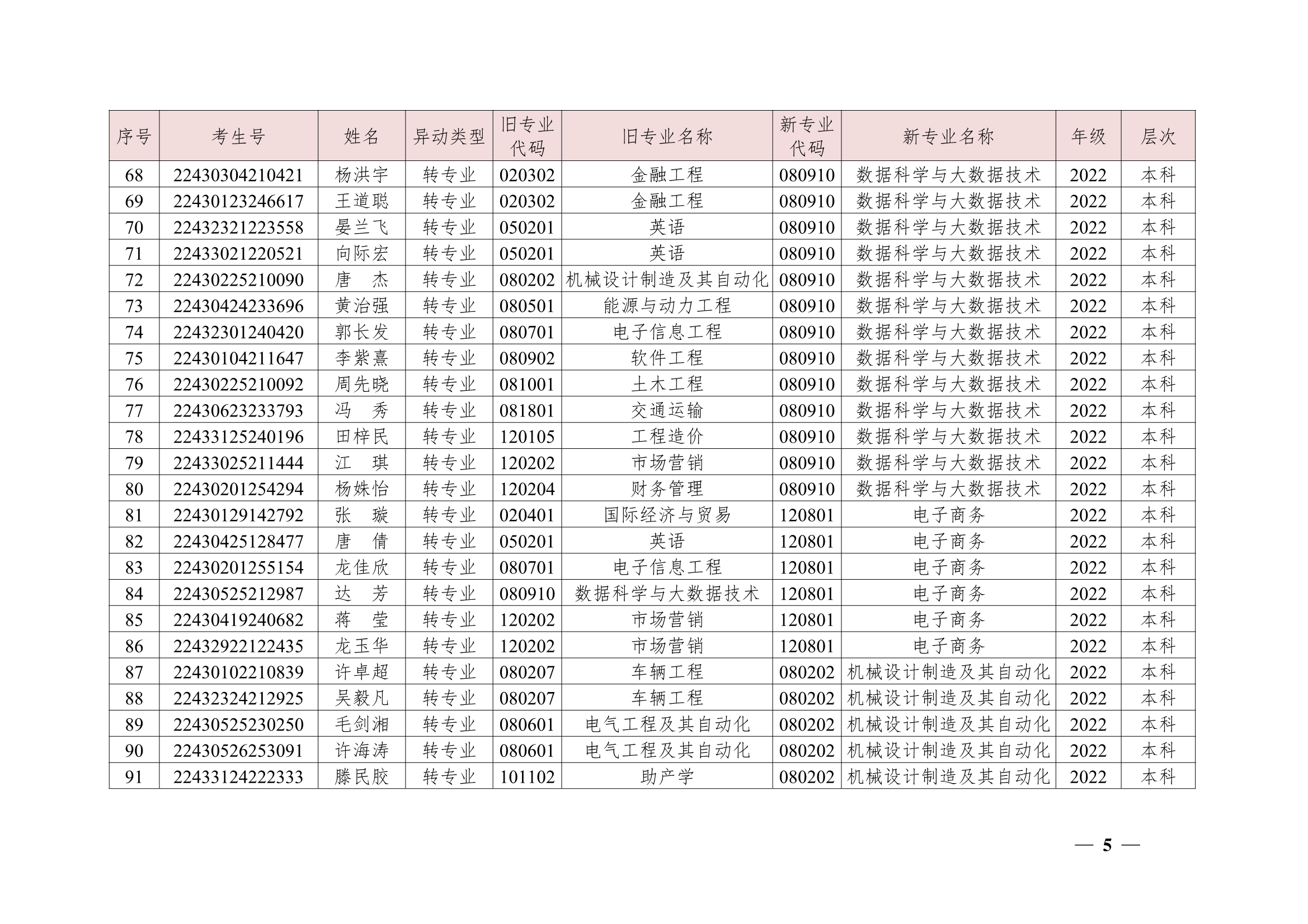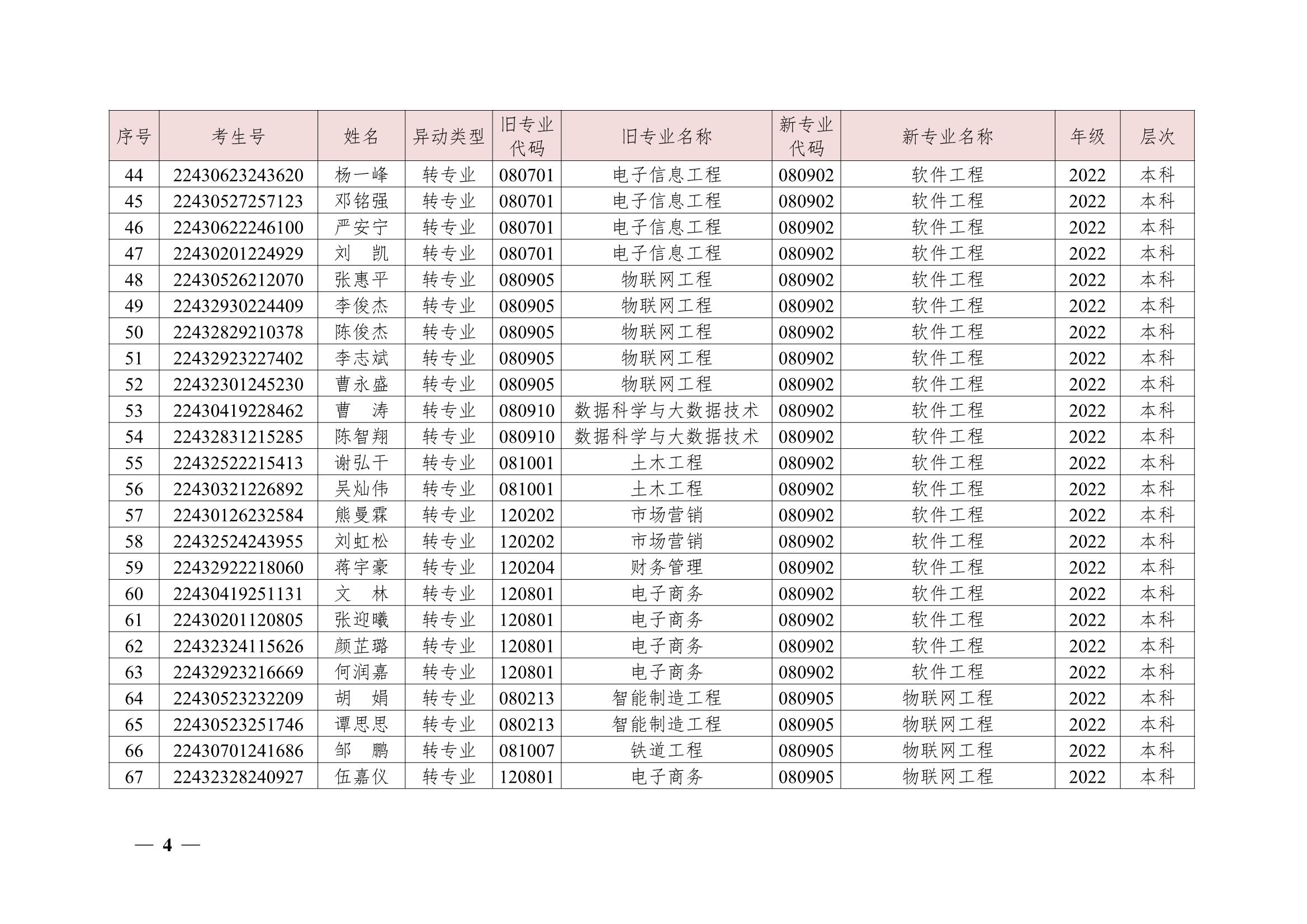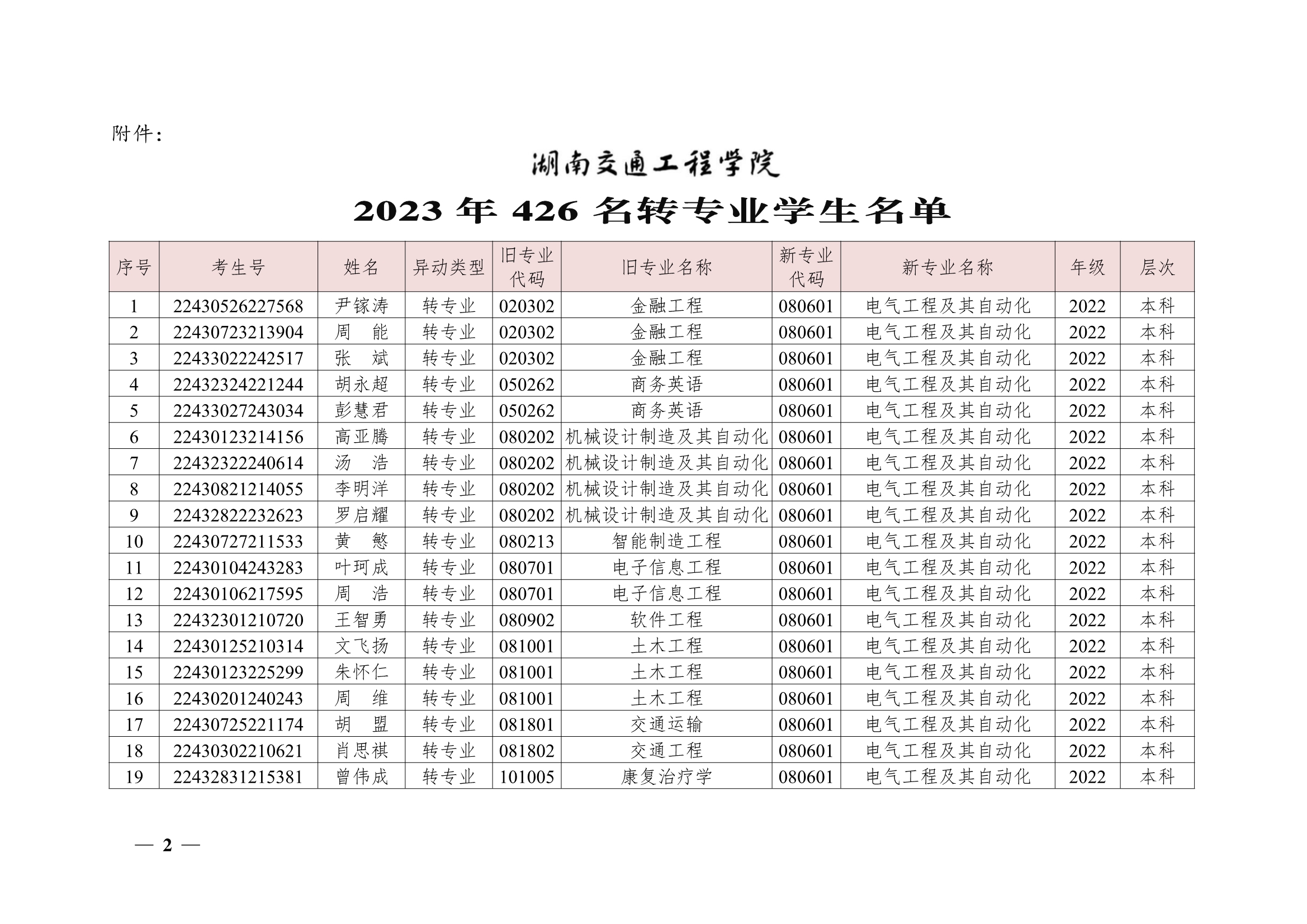 关于同意尹镓涛等426位同学转专业的决定(湘交院学管〔2023〕4号)