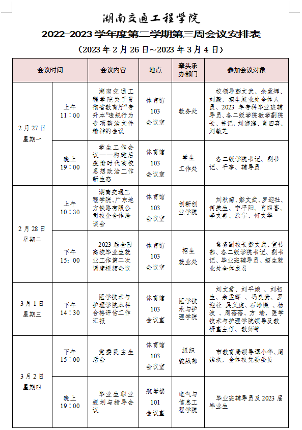 beat365手机版官方网站 2022-2023学年度第二学期第三周会议安排表