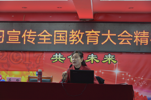 苏玲要求,全校上下要深入学习,广泛宣传贯彻落实全国教育大会精神,提高教育教学质量。她强调,当前和今后一个时期,学校将全面实施新时代立德树人工程,着力加强新时代教师队伍建设,加快推进学校本科教育教学质量,深入推进新时代学校教育事业快速健康发展。她要求,全校上下要以时不我待、只争朝夕的精神状态和攻坚克难、拼搏奋进的奋斗姿态,规范办学行为,加强内涵建设,以树人为核心,以立德为根本,着力推进学校教育事业高质量发展。