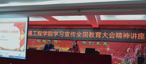 她要求,全校教职员工要充分认识全国教育大会的重大意义,深入学习领会习近平总书记关于教育的重要论述,扎实推进加快教育现代化的重点任务;要科学解析全国教育大会的精神内涵,学校的发展要始终坚持“以人才为本、教师为主体,以育人为本、学生为主体”的办学理念,让关注基层、关心师生员工的生活成为一种常态;要深入思考如何做好新形势下的教育工作。培养什么人,是教育的首要问题。学校要持续增强“四个意识”、坚定“四个自信”,自觉在政治立场、政治方向、政治原则、政治道路上同党中央保持高度一致,努力构建德智体美劳全面培养的教育体系,形成更高水平的人才培养体系。