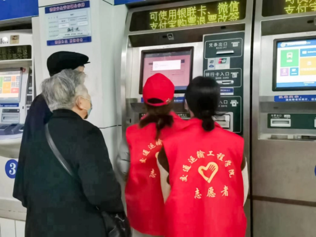 活动中,大家兵分四路,身着红色小马甲的志愿者们遍布在衡阳火车站各个场所,为旅客平安出行热心助力。有的帮助旅客提行李,为老弱病残母婴旅客及其他有特殊情况的旅客提供力所能及的帮助;售票厅内,志愿者们针对老年人、脱网旅客等群体,专人引导,为老年人线上购票、信息查询、预约服务提供便利,帮助老人在自动售票机上操作购票和改签等,保障老年人和脱网人群走得了、走得准。在候车站,志愿者们开展卫生清扫、垃圾清理和文明劝导服务活动,现场发放新客规《学生票购票指南》《儿童、残疾军人票购票指南》等宣传资料,并为旅客讲解相关购票规则;在火车站内,志愿者们为旅客提供一对一“一帮到底”服务,为老、幼、病、残、孕等重点旅客提供服务,护送行动不便的旅客进站乘车,确保旅客顺利出行。