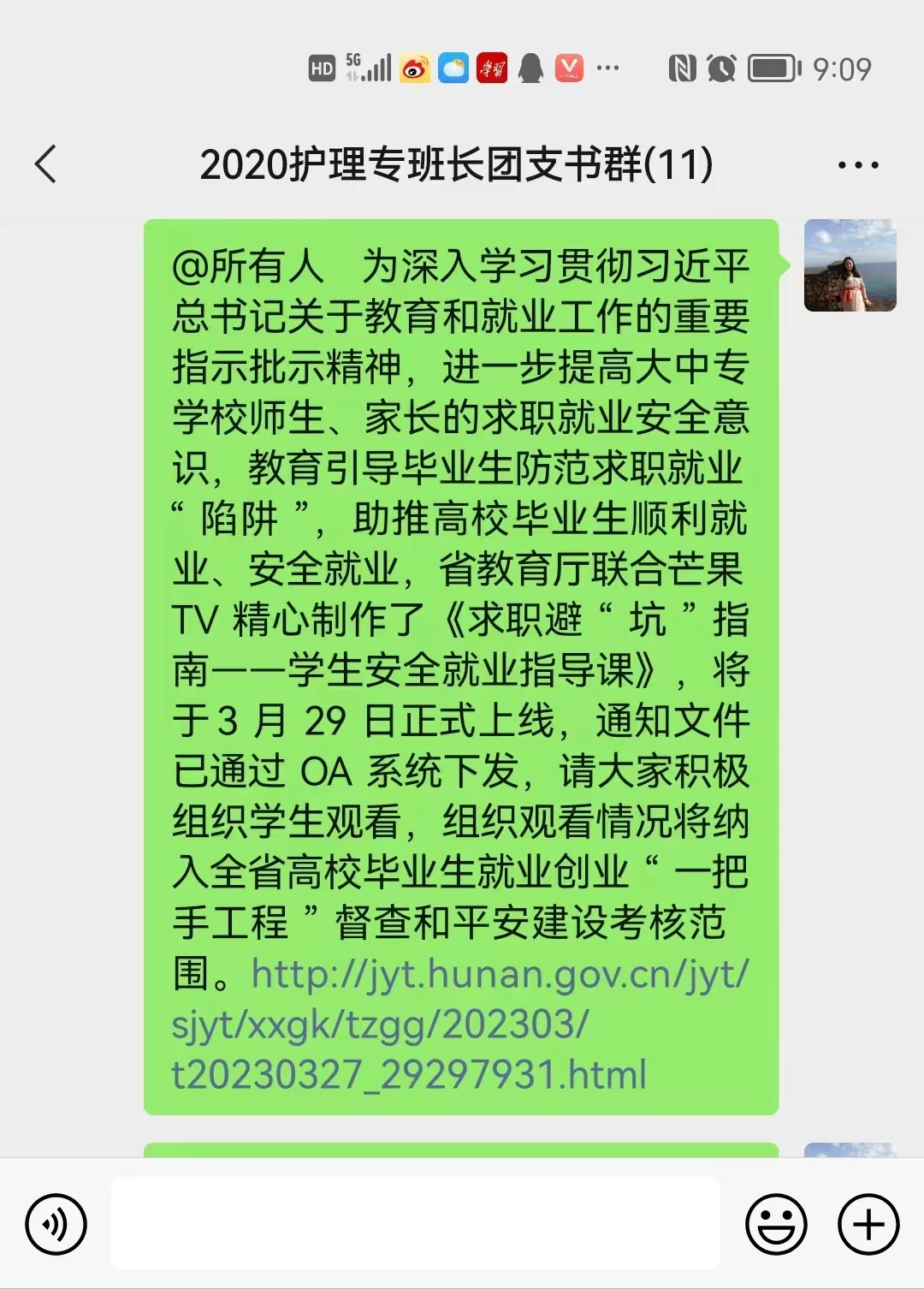 为了深入学习贯彻习近平总书记关于教育和就业工作的重要指示批示精神,让老师和同学了解所学专业,挖掘同学们的大优势,同时,能进一步提高医护学院的师生对求职就业的安全意识,教育引导毕业生防范求职就业的“陷阱”,助推医护学院的毕业生顺利毕业、安全就业,找到属于自己的职业腾飞之路。3月29日,医学技术与护理学院组织全体师生于线上观看《求职避“坑”指南——学生安全就业指导课》。