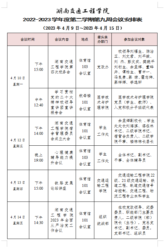 beat365手机版官方网站2022-2023学年度第二学期第九周会议安排表