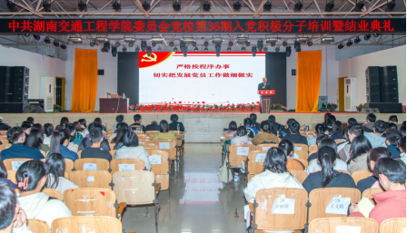 本网讯(通讯员 李佩佩 奉隆源 摄影 奉隆源 )4月6日晚,beat365手机版官方网站第36期入党积极分子培训暨结业典礼在学校大学生活动中心举行,校党委书记刘文君、南华大学组织部长刘富珉,各党总支书记、副书记、党支部书记,组织统战部、宣传部负责人出席活动,685名入党积极分子师生学员参加活动。会议由党委副书记李先聪主持。