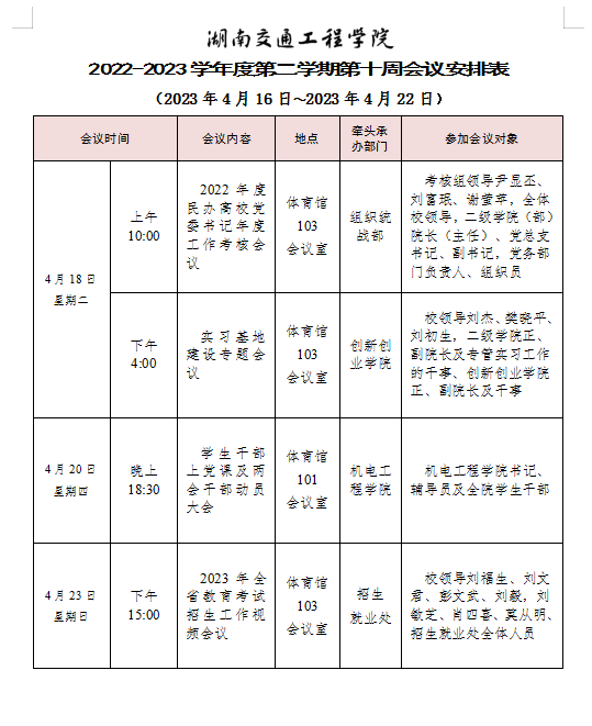 beat365手机版官方网站2022-2023学年度第二学期第十一周会议安排表