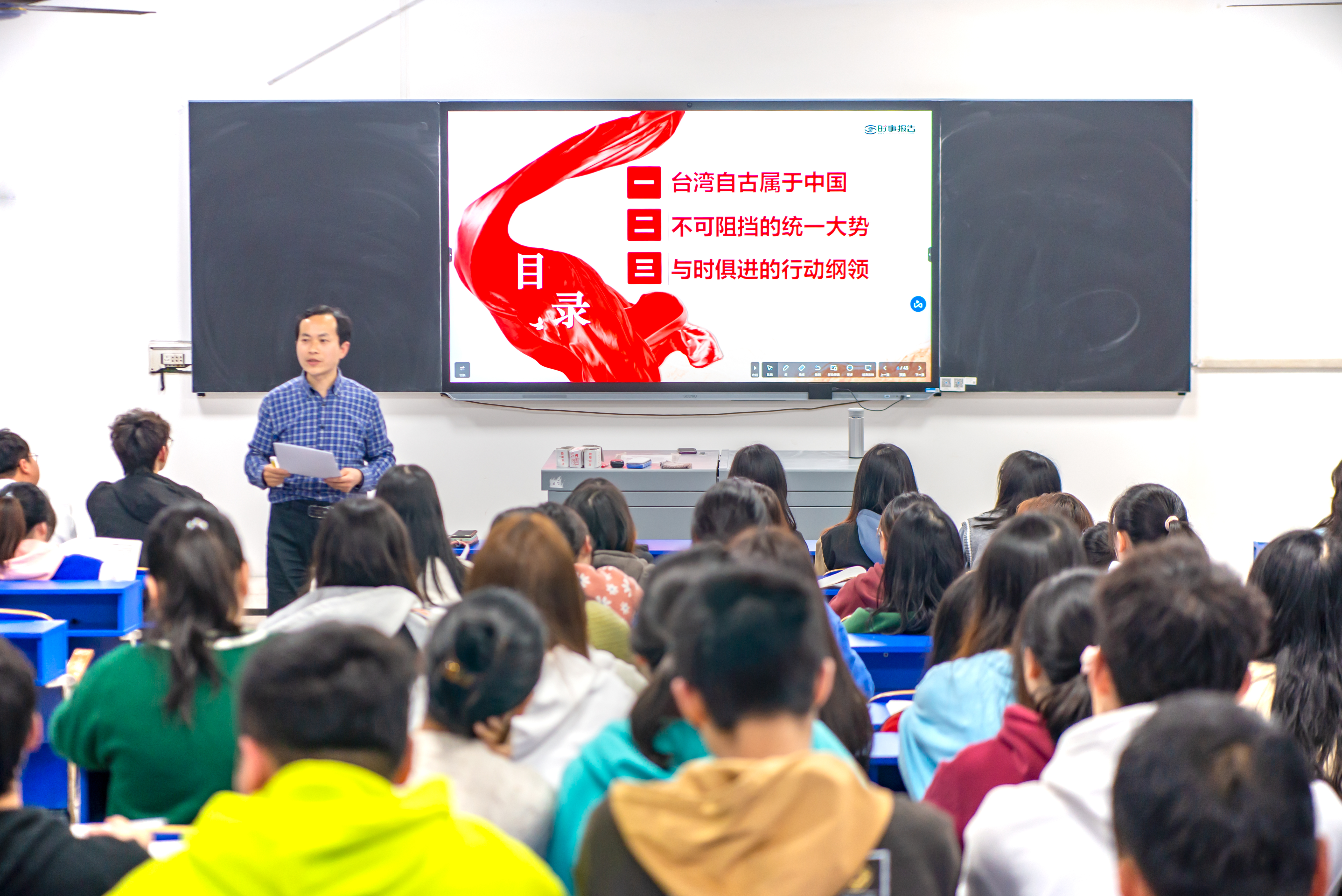 本次授课专题为“在新时代新征程上推进祖国统一”。为讲好这堂形势与政策课,校领导积极查阅资料,在分头备课的基础上,于3月6日进行了集体备课,最终形成统一课件和教案。本次授课聚焦台湾问题与新时代中国统一事业,进一步重申台湾是中国不可分割的一部分这一事实和现状,展现中国共产党和中国人民追求祖国统一的坚定意志和坚强决心,阐述中国共产党和中国政府在新时代推进实现祖国统一的立场和政策。