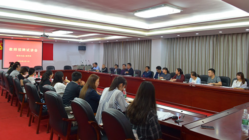 本网讯(通讯员李建华谭园玲 摄影李建华)为吸收高素质人才,增添beat365发展后劲,5月14日,在人事处的精心筹备周密组织下,beat365在103会议室举行2019年上半年新教师招聘试讲会,副董事长、第一副校长刘杰,教务处、宣传部及二级学院负责人出席招聘试讲会。