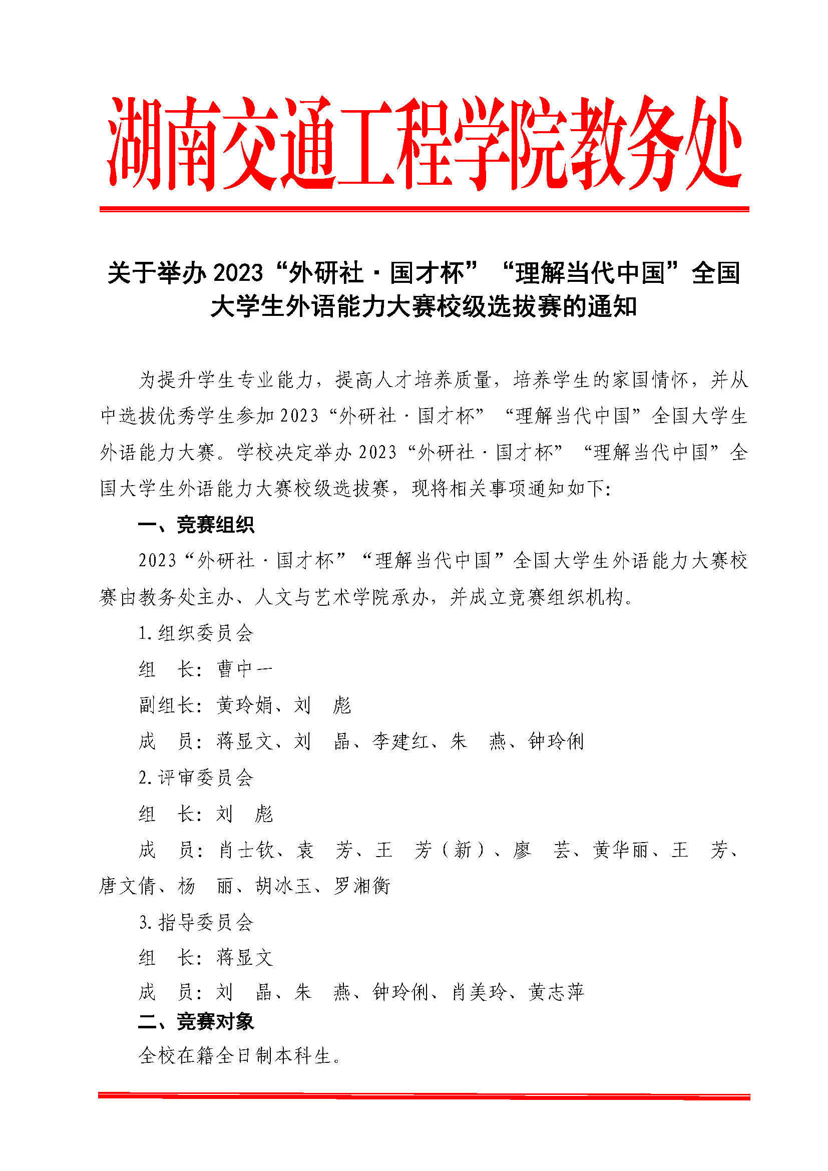 关于举办2023“外研社·国才杯”“理解当代中国”全国大学生外语能力大赛校级选拔赛的通知