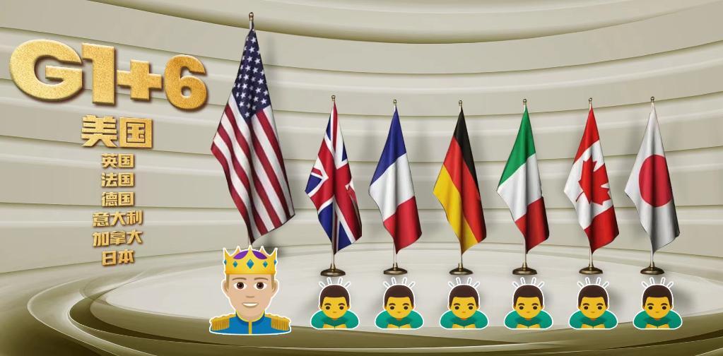 美国企图继续利用七国集团号令世界、维护霸权,其盟友也越发与其离心离德。七国集团,既没有推动世界进步的动机,也没有协调一致的行动能力,更难以与“被胁迫者”形成统一的意志。一个离心力越来越大的七国集团,一个正当性不断缺失的七国集团,只能叫做“1+6国集团”(“G1+6”)。