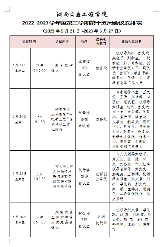 beat365手机版官方网站2022-2023学年度第二学期第十五周会议安排表