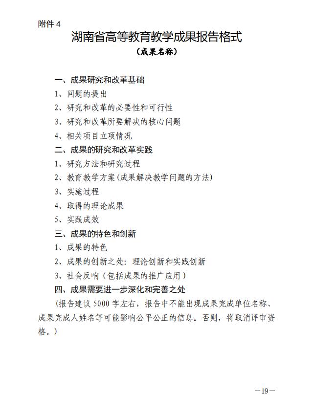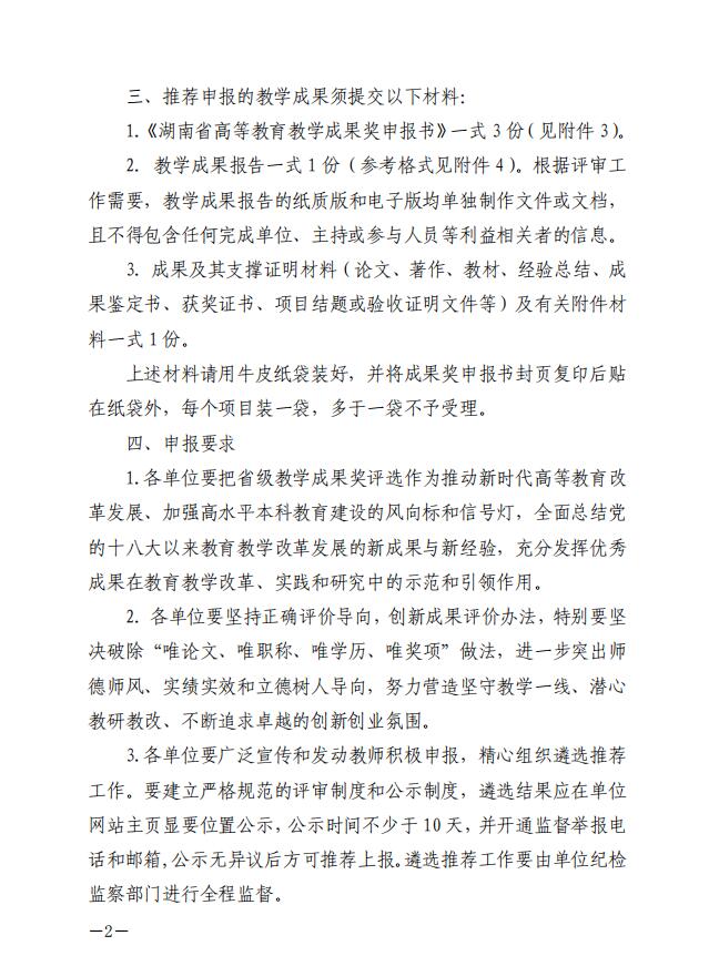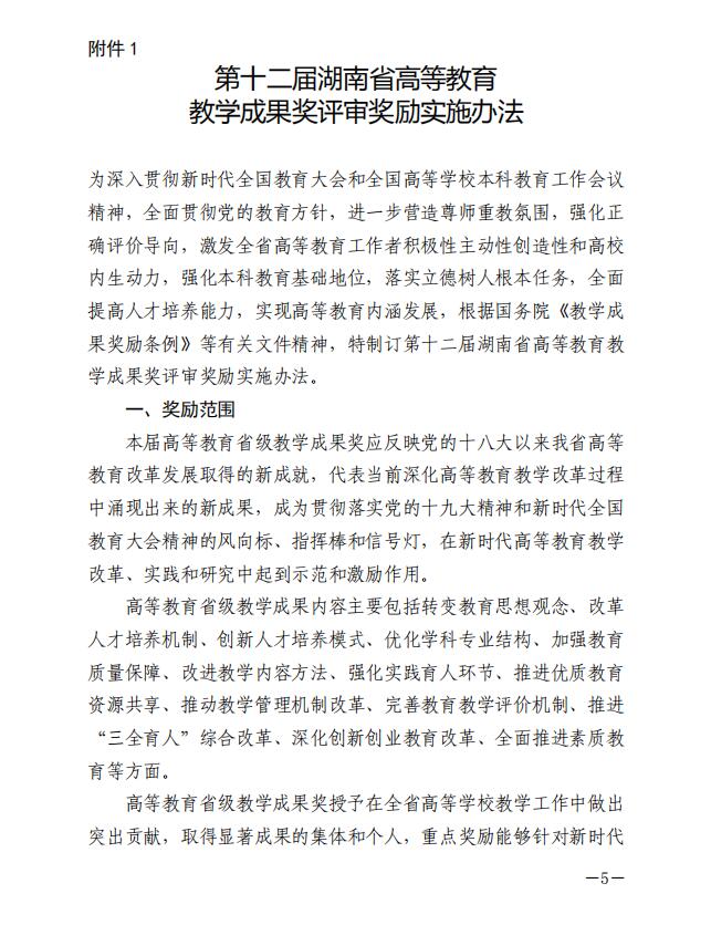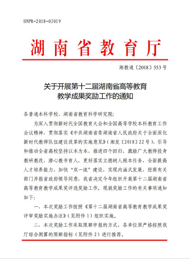 湖南省教育厅《关于开展第十二届湖南省高等教育教学成果奖励工作的通知》