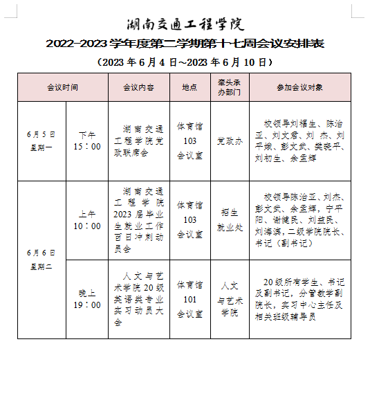 beat365手机版官方网站2022-2023学年度第二学期第十七周会议安排表