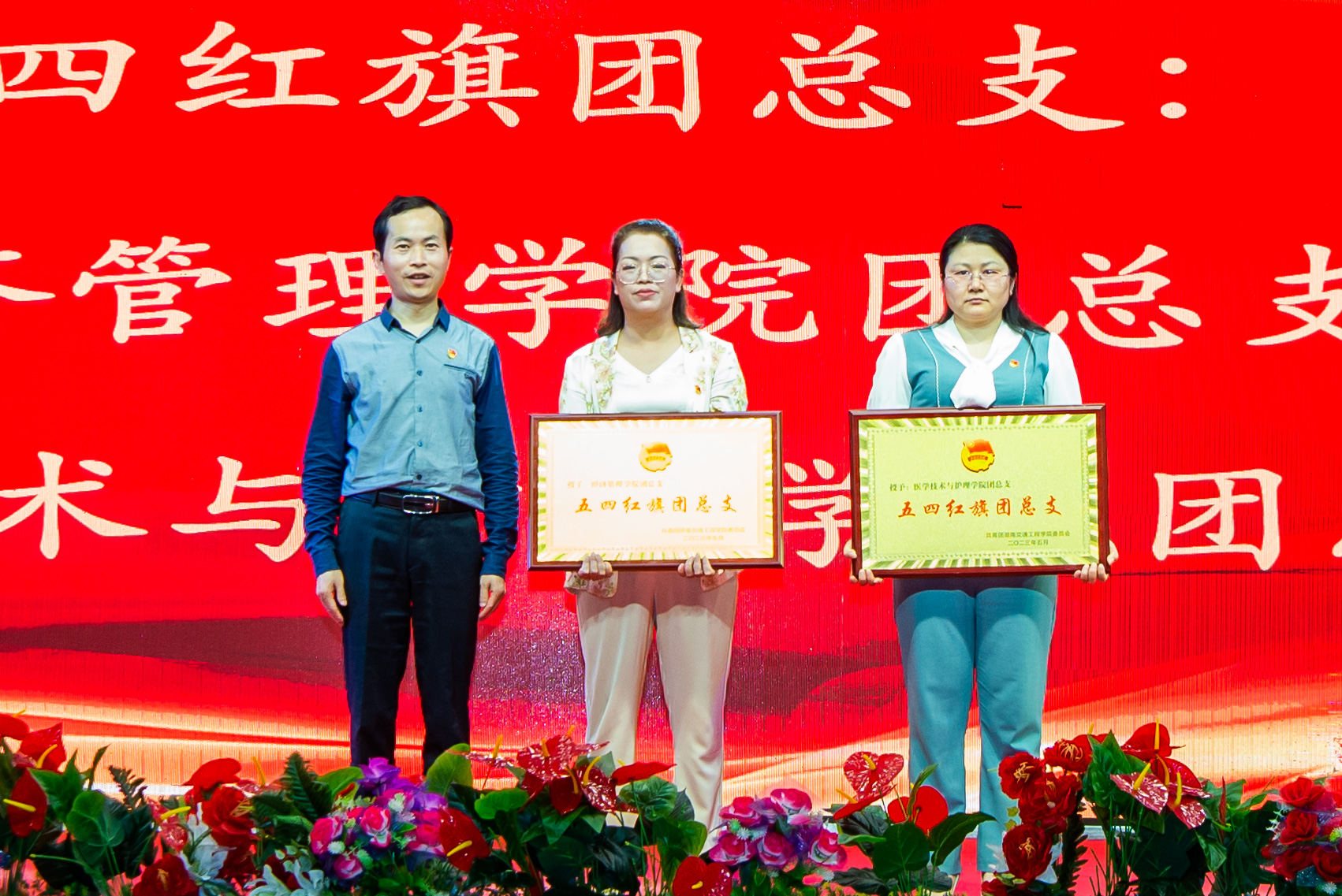 刘文君代表学校党委向全校广大团员青年致以节日的问候,向即将获奖的先进集体和个人表示热烈的祝贺。刘文君在致辞前首先与同学们互动,他说习近平总书记非常关心青年,每年的“五四”前后都会把时间交给青年朋友,那么今年的“五四”总书记去寄语青年什么呀?同学们回答铿锵有力:习近平给中国农业大学科技小院的学生回信强调:厚植爱农情怀,练就兴农本领,在乡村振兴的大舞台上建功立业。刘文君为同学们点赞并提出四点希望。一是要立大志,厚植家国情怀,恪守爱国底线,做主流思想文化的引领者。二是要明大德,自觉践行和弘扬社会主义核心价值观,在一点一滴中提高自身思想道德素质。三是要成大才,珍惜韶华、潜心读书、勇于创新、敢于突破,筑牢成长成才之基。四是要担大任,立足真学实干,以“厚德善思 强能笃行”的校训为指引,在肩负时代重任时行胜于言,在真刀真枪的实干中成就一番事业,让青春在为祖国、为民族、为人民、为人类的不懈奋斗中绽放绚丽之花。刘文君号召全校团员青年接过五四精神的火炬,高扬青春旗帜,踔厉奋发,勇毅前行,努力成为德智体美劳全面发展的新时代青年,为学校建设高水平应用型交通大学贡献青春力量,在实现中华民族伟大复兴的中国梦中绽放青春光彩。