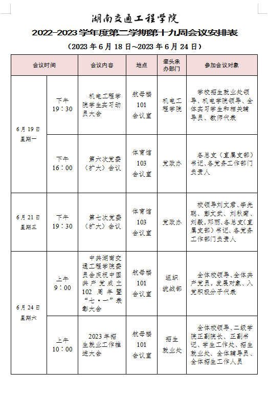 beat365手机版官方网站2022-2023学年度第二学期第十九周会议安排表
