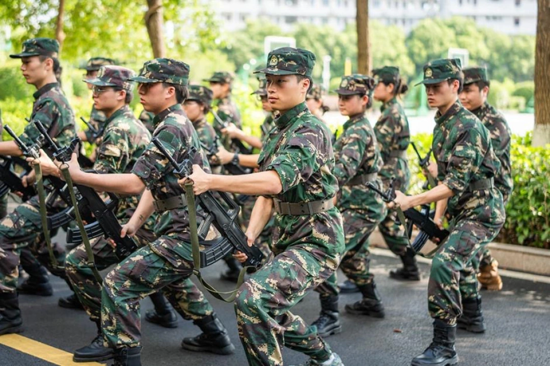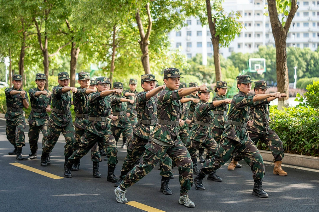在训练内容上,全体参训人员围绕学生军训工作进行军事理论、军事技能与“四会”教学法训练;训练模式上,连队采取以老带新自训模式,由连级骨干任连队值班员;训练时间和强度上,科学划分训练时段,严格控制训练强度,避开高温时段进行训练,集训强度以不影响学生教官的正常学习状态与可接受范围内为准,并结合实战、增强教官实用技能、展开军体拳、刺杀操、负重拉练等训练。
