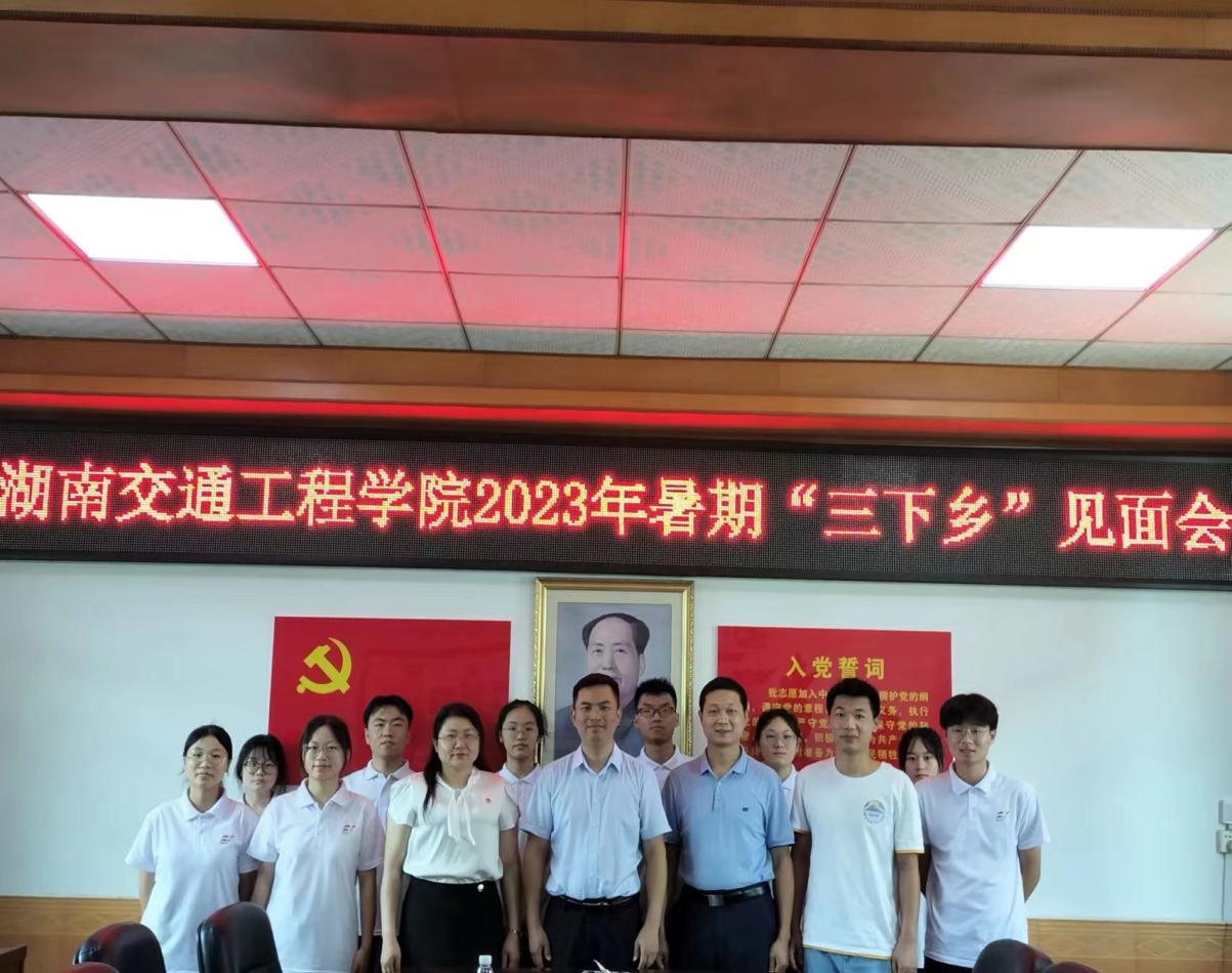 7月5日,beat365手机版官方网站“强教育,助医疗”社会实践服务团队赴衡南县宝盖镇进行暑期“三下乡”社会实践活动。团队成员10人在医学技术与护理学院领导肖桂香带领下,顺利抵达宝盖镇并且与镇领导进行2023年暑期“三下乡”见面会。