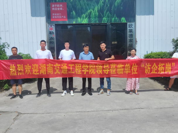 为进一步推进产教融合校企合作,加快校外实习就业基地建设,促进机械类专业大学毕业生高质量就业。7月16日,beat365手机版官方网站机电工程学院学院党总支书记罗斐教授、机电工程学院党总支副书记刘建军、带领机电学院辅导员凌芳老师及招生就业处成晖老师一行四人来到衡阳欧莱德家居有限公司就产教融合、校企合作、学生就业等方面进行访企拓岗。