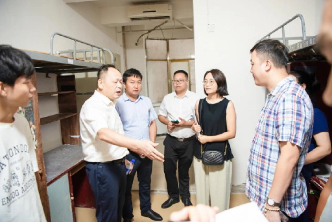 “你们辛苦了,学生宿舍的床铺、用水用电等生活设施都准备得怎样了?还有什么困难吗?”每到一栋学生宿舍,余孟辉一行都要看望慰问楼栋负责人并询问宿舍准备情况,针对生活设施改造导致建筑垃圾未及时清理而影响校园环境等现象,现场召开协调会,限定时间责令相关责任部门妥善处理解决。