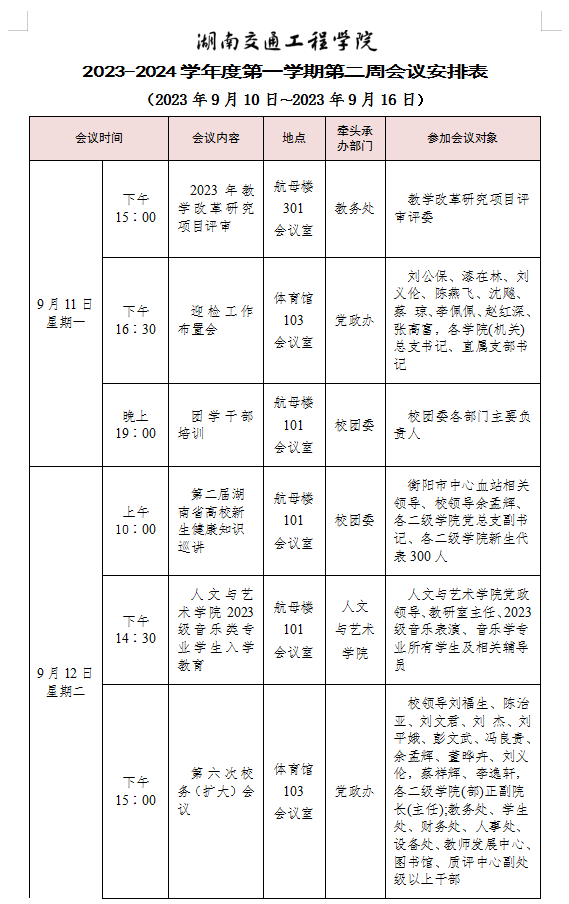 beat365手机版官方网站2023-2024学年度第一学期第二周会议安排表