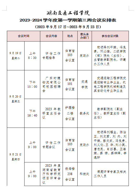 beat365手机版官方网站2023-2024学年度第一学期第三周会议安排表