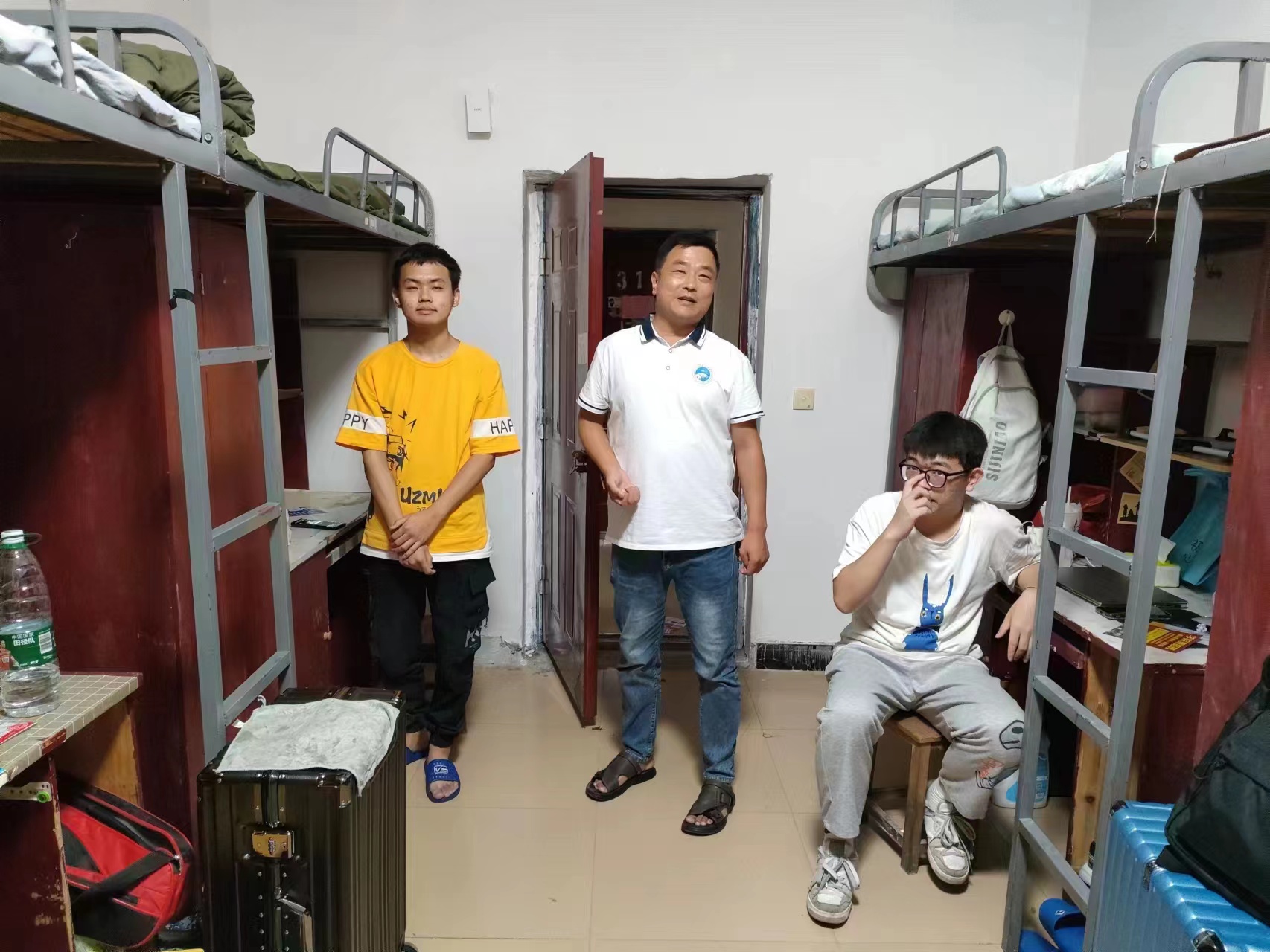 在进入学生宿舍慰问新生的同时,张书记也留意到了有些宿舍中存在的一些问题,如空调制冷效果不好、洗漱台柜子损坏等,并告知同学们可以通过学校维修群上报宿舍维修信息以及物件损坏情况进行维修,后勤部门会第一时间上门服务,同时也可以向辅导员老师、社区辅导员以及学院书记进行反映。