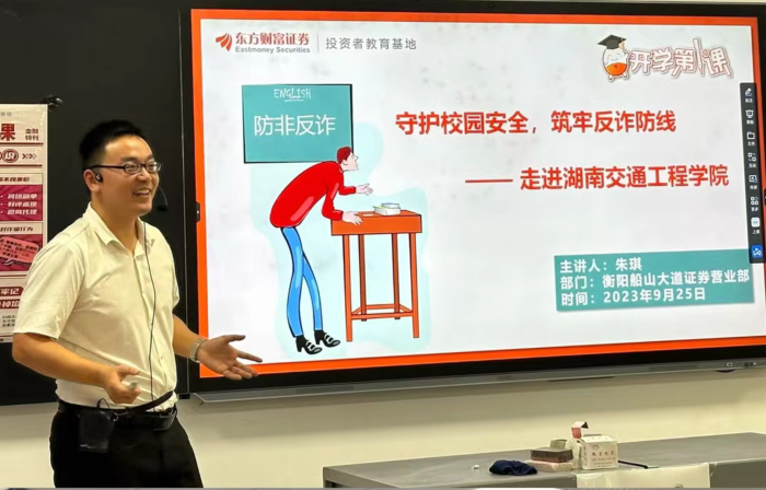 东方财富证券公司专家通过一个个鲜活的案例分析,深入浅出地梳理了电信网络诈骗的常见形式及防范措施,为同学们上了一节生动形象的网络安全警示教育课。