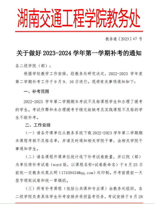 关于做好2023-2024学年第一学期补考工作的通知