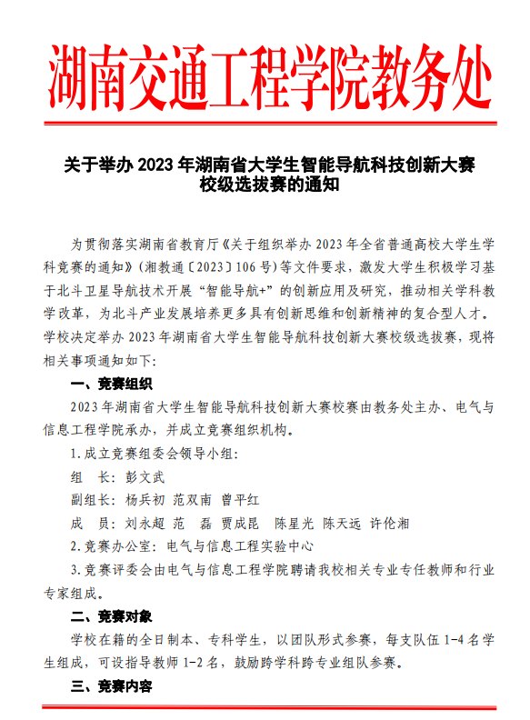 关于举办2023年湖南省大学生智能导航科技创新大赛校级选拔赛的通知