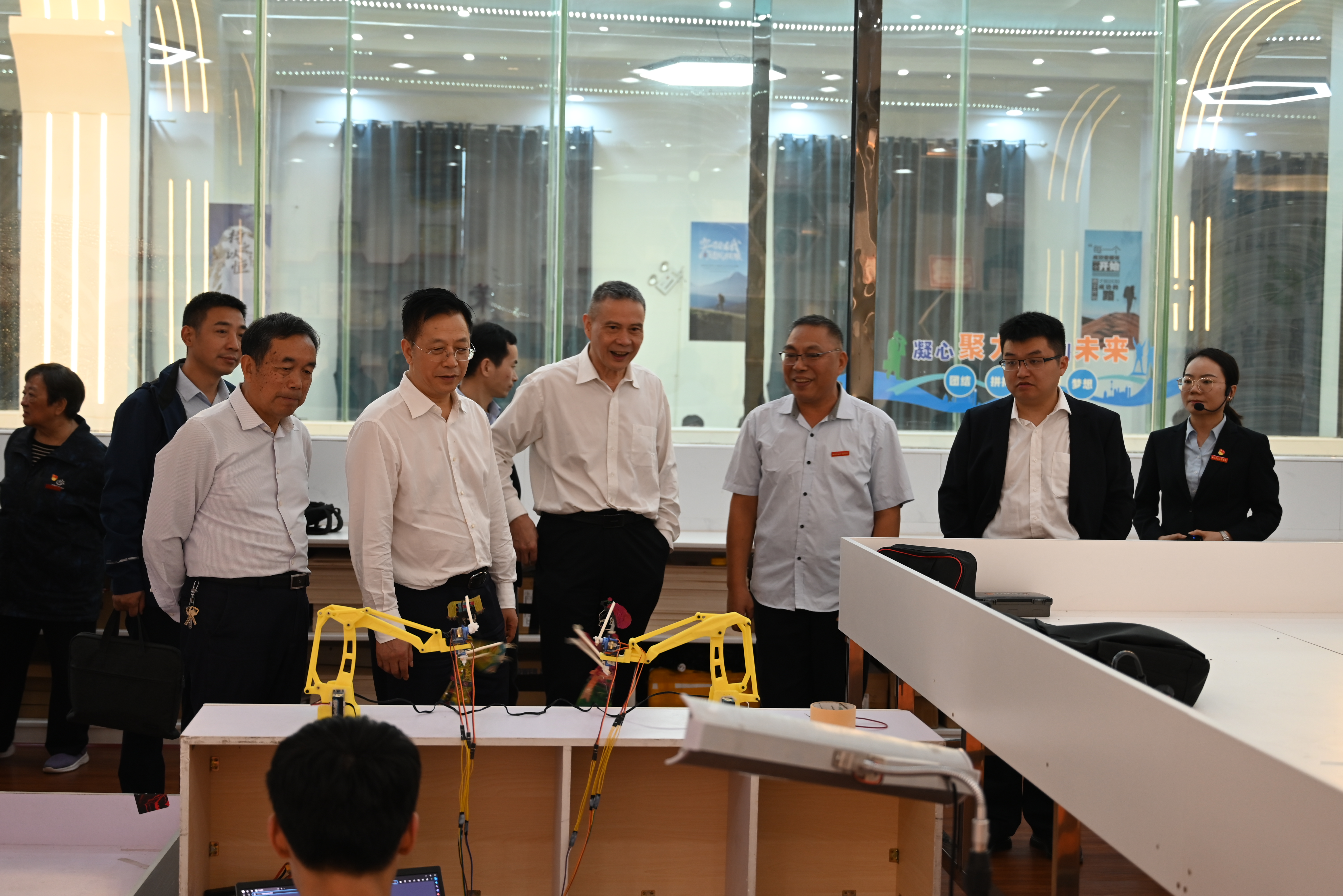 夏智伦一行实地调研工程实践创新中心、北斗应用开发实验室、无人机应用开发实验室、交通大数据实验室、铁道工程与交通运输实训基地、轨道交通综合模拟实训基地、创新创业学院等学生实习实训场所,了解了学校在教育教学、基础条件建设、产教融合、改革发展等方面的进展。