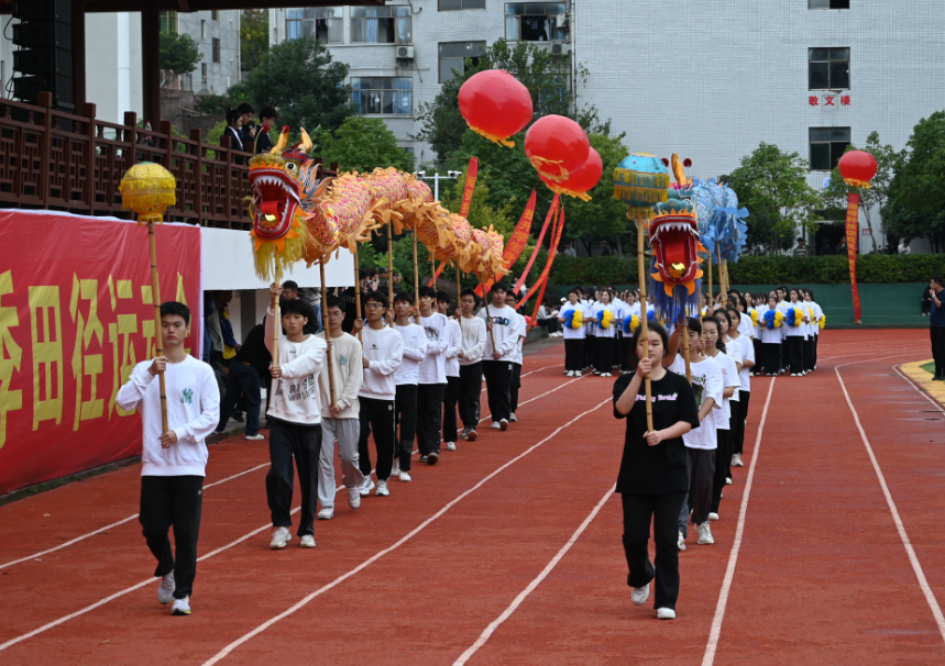 雄壮嘹亮的国歌声响起,师生合唱,响彻校园。党委书记刘文君致开幕辞。他指出,每天锻炼一小时,健康工作五十年,幸福生活一辈子。学校高度重视体育教学和体育运动,把“一切为了学生的健康”作为体育工作的出发点和归宿点。引导学生养成良好的运动习惯,掌握基本的运动技能,享受运动带来的健康快乐,锤炼意志品质,促进全面发展。希望运动员们以饱满的热情、昂扬的斗志、勇于拼搏的精神参加各项赛事,比思想、比作风、比纪律、比竞技,赛出水平,赛出风格,赛出学校精神;全体裁判员认真履职、秉公执裁;全体工作人员各司其职、保障安全,为各项比赛的顺利进行提供有力保证。