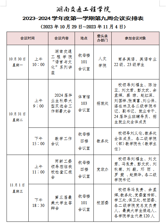 beat365手机版官方网站 2023-2024学年度第一学期第九周会议安排表