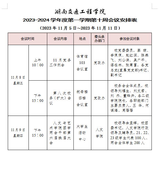 beat365手机版官方网站 2023-2024学年度第一学期第十一周会议安排表