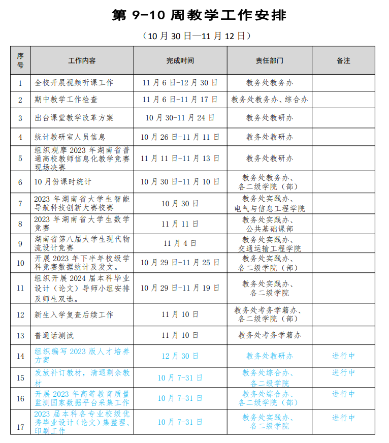 第9-10周教学工作安排