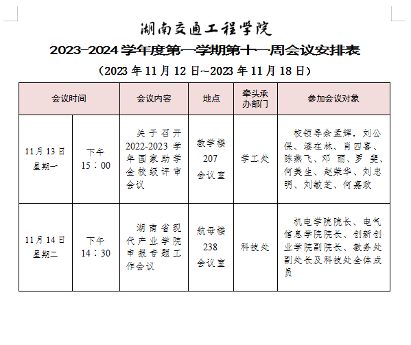 beat365手机版官方网站 2023-2024学年度第一学期第十一周会议安排表