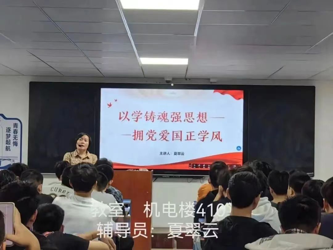 以学铸魂,就是要做好学习贯彻新时代中国特色社会主义思想的深化、内化、转化工作,从思想上正本清源、固本培元,筑牢信仰之基、补足精神之钙、把稳思想之舵。”习近平总书记近日在广东考察时就“以学铸魂”作出深刻阐释,提出明确要求。在青春有限的时光里,每个人都有自己的远大理想,唯有坚韧不拔的毅力,勇往直前的奋斗态度,才能到达顶峰。为此,于10月15日beat365手机版官方网站机电工程学院的各班辅导员在班上开展"以学铸魂”主题班会活动。