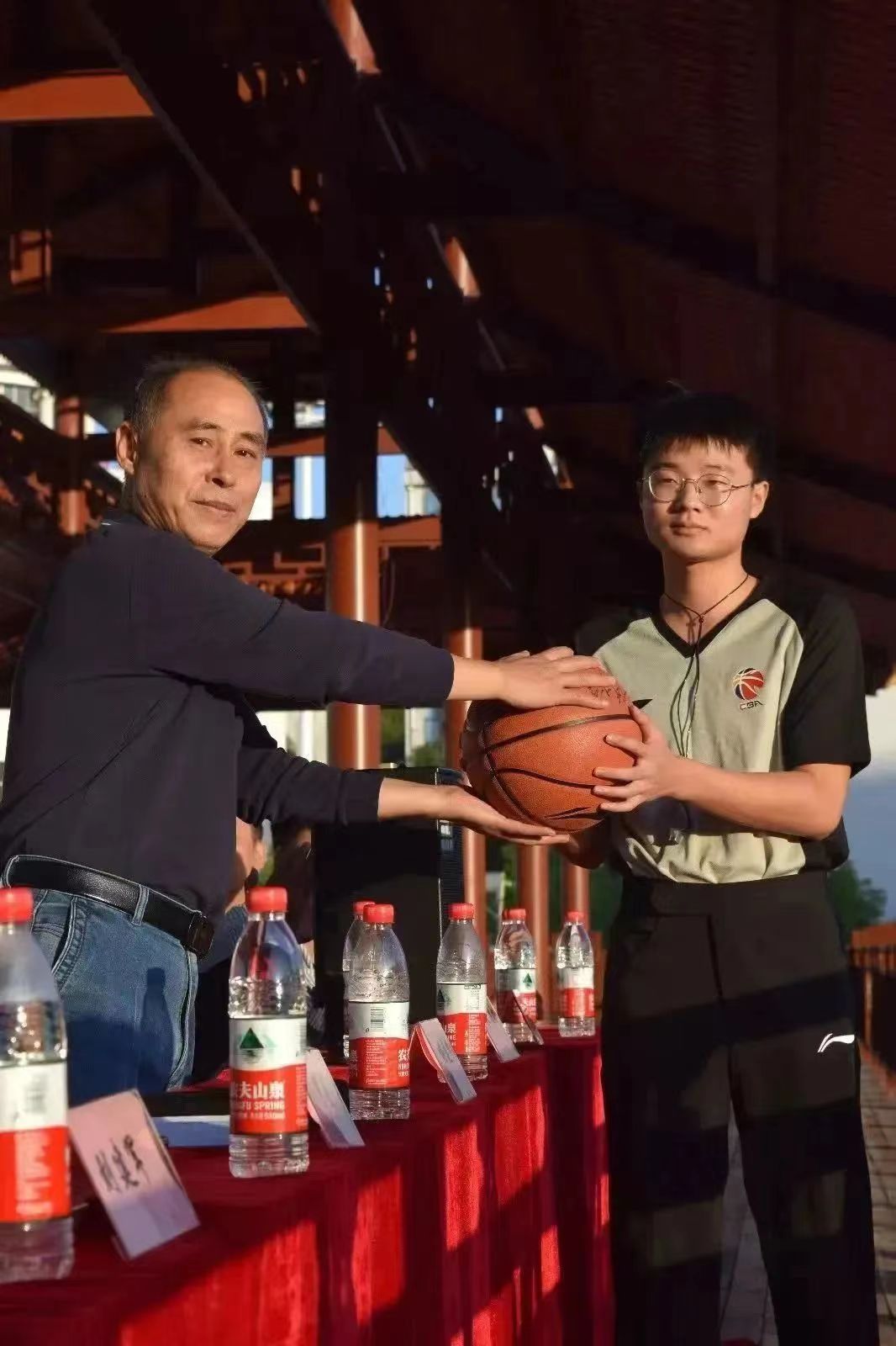 杨建坤院长宣布篮球赛正式开始,并进行授球仪式。至此机电工程学院“工匠杯”篮球赛开幕式取得圆满成功。