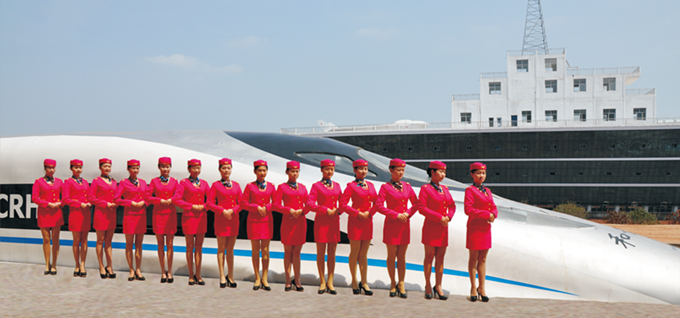 和谐号”高铁动车乘务实训。