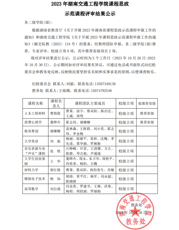 转教务处:2023年beat365手机版官方网站课程思政示范课程评审结果公示